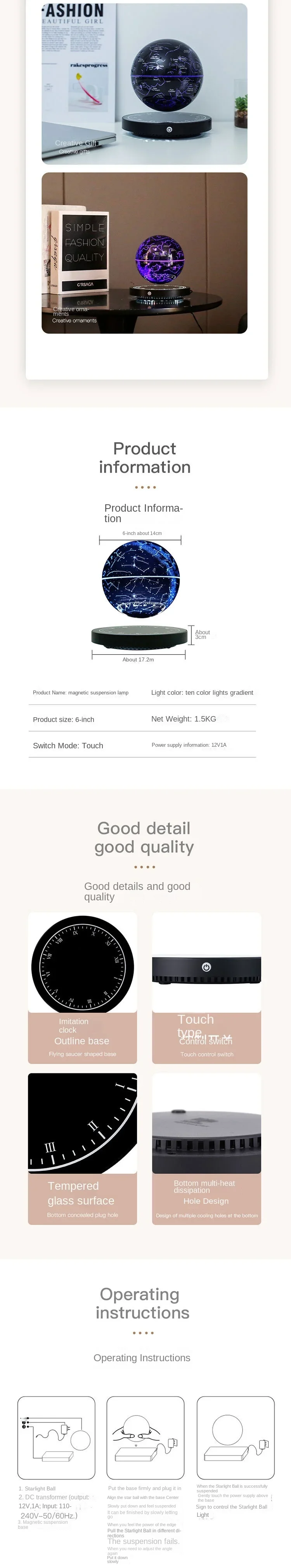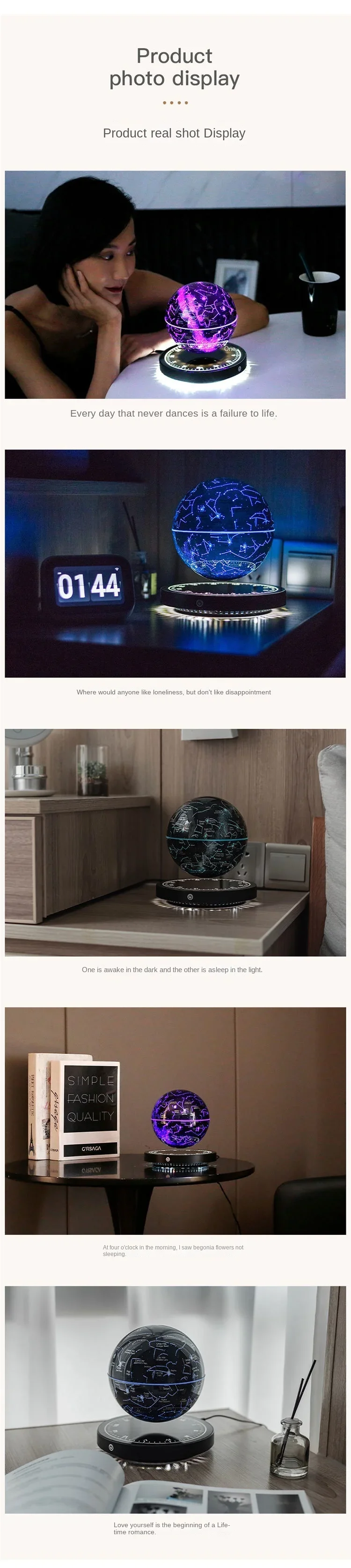 Floating 14cm English geographic globe with LED lights inside
